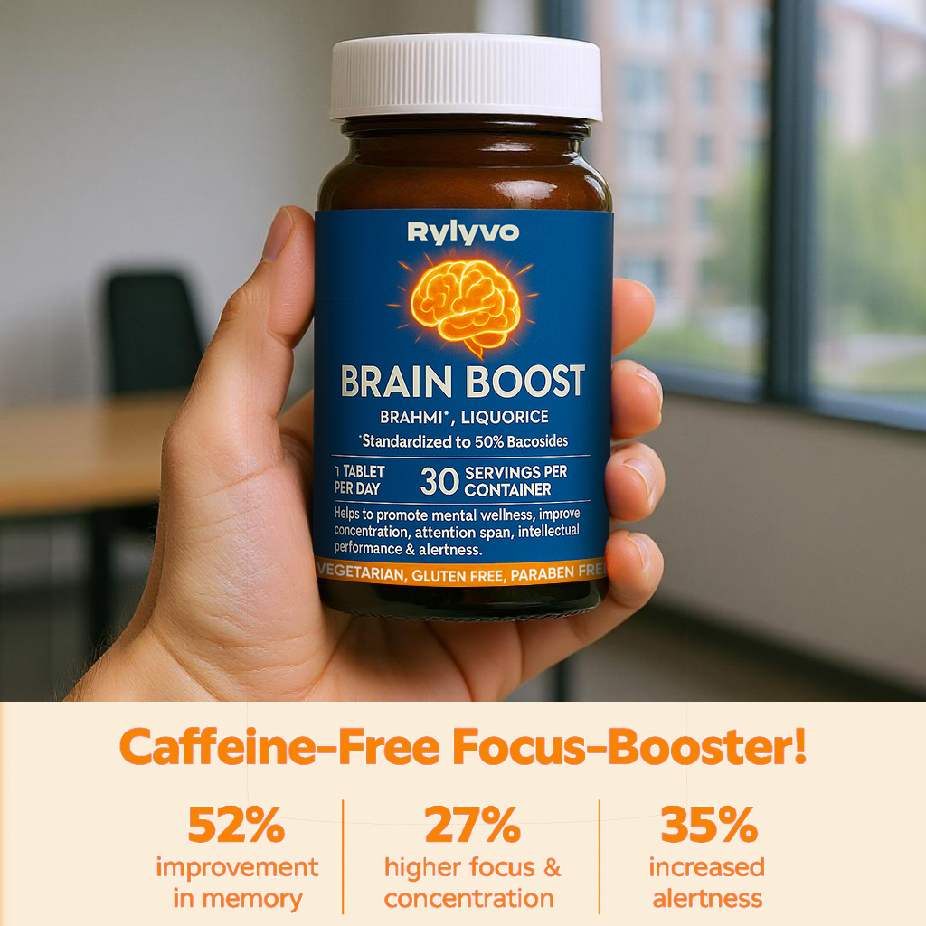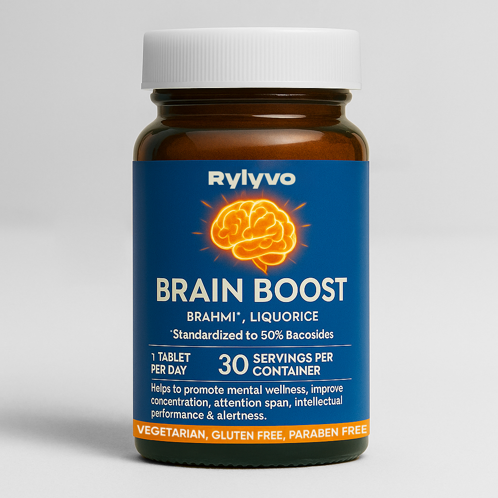 Let’s face it, our brains are running on overdrive. Whether it’s work, study, or just trying to keep up with the day, focus doesn’t always come easy. That’s where Rylyvo Brain Boost comes in. It’s built for people who need their mind to show up, sharp and steady as memory booster.This is not any memory booster medicine or mind booster medicine, the hero here is Brahmi, an Ayurvedic powerhouse known for supporting memory, clarity, and mental alertness. Ours is no basic extract, it's standardized to 50% bacosides, so you're getting the real deal when it comes to results. Paired with Mulethi (licorice root), it helps calm mental chatter and improve how your brain handles stress, no burnout, just balance.Forget caffeine spikes. This isn’t that. Brain Boost offers a steady lift without the crash. It’s ideal if you're looking for mind booster or memory booster medicine, brain power tablets, or just something to keep you focused without fried nerves.A brain boost supplement great for students, professionals, or anyone who wants their brain to feel “on.” If you’re searching for brahmi tablets, brain capsules, or clean medicine for brain health, this one gets it done.Whether you're after brain tablets, memory pills, memory capsules, or natural brain herbs that work, Brain Boost fits right in. It works as your daily mind booster, a reliable source of vitamins for memory, and a long-term brain power medicine that keeps you strong, sharp, and steady.